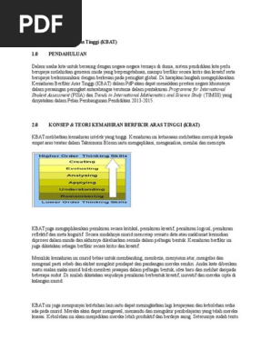 Kemahiran ini memerlukan seseorang itu berfikir sebelum membuat penjelasan dengan menganalisis, menilai, menjana idea, pilihan membuat keputusan, menyelesaikan masalah dan membuat perancangan. Kbat ialah keupayaan untuk mengaplikasikan pengetahuan, kemahiran dan nilai dalam membuat penaakulan dan refleksi bagi menyelesaikan masalah, membuat keputusan, berinovasi dan berupaya mencipta sesuatu. Kesediaan guru mengendalikan proses pengajajaran dan rajendran nagappan (2001). Pengajaran kemahiran berfikir aras tinggi: Bagaimana guru sejarah menerap kbat?