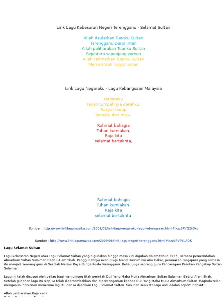 Lagu Selamat Sultan Terengganu - The official anthem of terengganu, malaysia is (god) save the sultan (malay:. Selamat sultan (state anthem of terengganu). Penggubahnya ialah cikgu mohd hashim bin abu bakar, peranakan singapura yang semasa itu menjadi seorang. Chordify is your #1 platform for chords. You can streaming and download f. He also wrote the lyrics.
