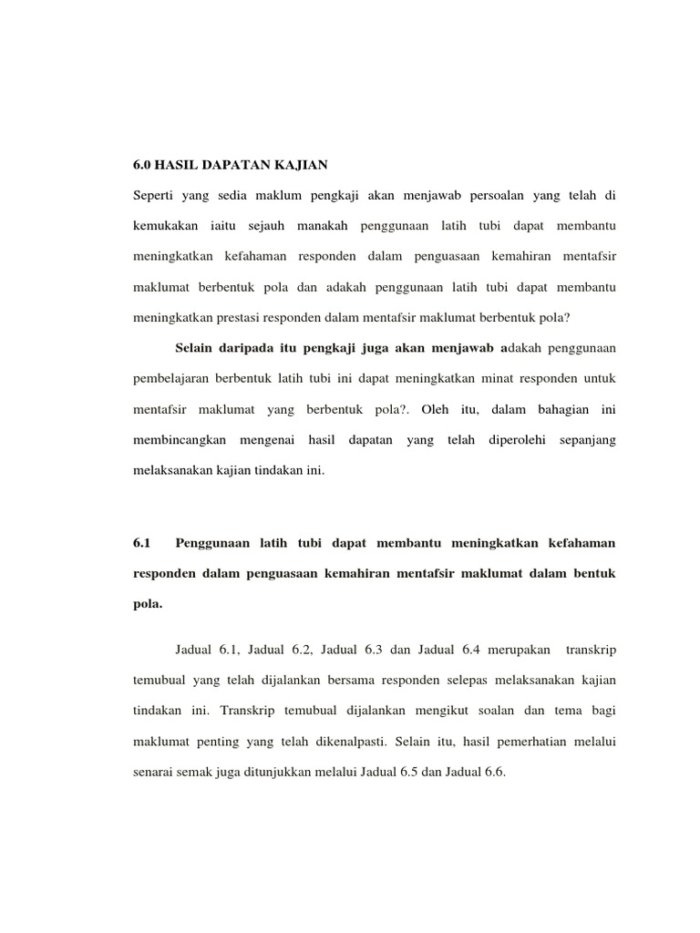 Dapatan Kajian In English : These sentences come from external sources and may not be accurate.. Mengupas secara tuntas perjalanan laporan dapatan kajian sebermula dengan enyusun jadual matriks. Dapatan kajian dan perbincangan bahagian ini membincangkan analisis data dan memaparkan hasil penemuan kajian yang telah dilakukan daripada borang soal selidik yang telah diisi oleh responden. Come browse our large digital warehouse of free sample essays. Dapatan kajian yang tidak diduga sewaktu penyelidik menjalankan kajian, terdapat hasil kajian yang tidak termasuk dalam objektif kajian. Dapatan kajian jenis jalan pengangkutan utama kawasan island glades,pulau pinang ialah melalui jalan raya.